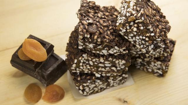 Queste barrette sono perfette come snack, per la merenda dei vostri bambini o per una colazione veloce. Potete sostituire il cioccolato fondente con il cioccolato al latte, oppure potete utilizzare il cioccolato bianco togliendo il miele dalla ricetta. Oltre alle albicocche secche potete usare le prugne secche, i datteri o l?uvetta. Si conservano 10 giorni in frigorifero.