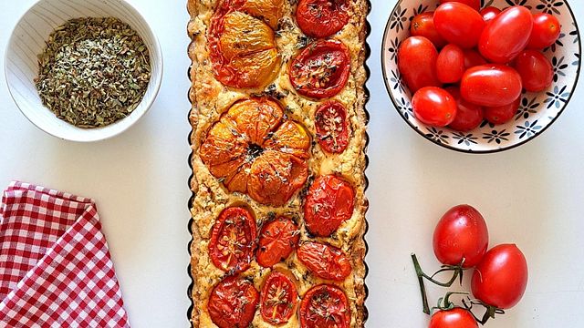 Questa è un’idea creativa per preparare una crostata vegana in versione salata. L'impasto friabile e leggero è preparato con farina integrale senza uova e senza burro. La farcitura l'ho preparata con hummus di ceci, mix di pomodori e tante erbe aromatiche. L’hummus si può preparare sia con i ceci che con altri legumi, tipo fagioli cannellini, fagioli di spagna o anche con i piselli.